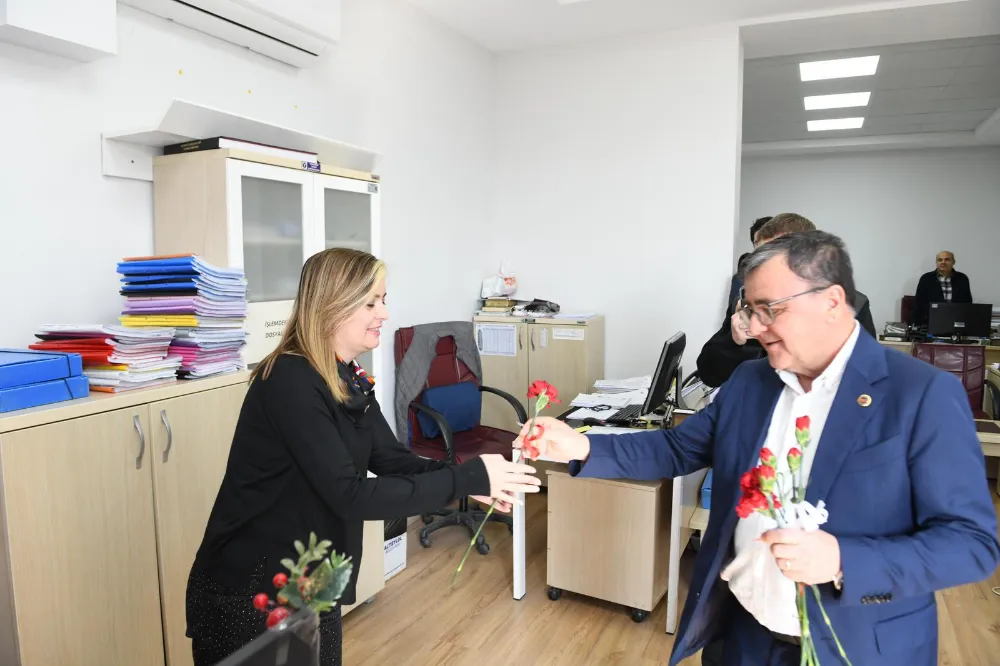 Altıeylül Belediye Başkanı Hakan Şehirli, 8 Mart Dünya Emekçi Kadınlar Günü dolayısıyla belediyede görev yapan kadın personeli ziyaret ederek günlerini kutladı.