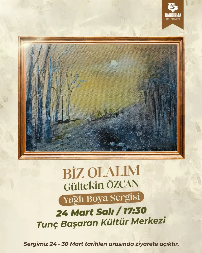 Bandırma Belediyesi, kültür ve sanat etkinlikleri kapsamında önemli bir sergiye ev sahipliği yapmaya hazırlanıyor. Sanatın farklı disiplinleriyle iç içe bir yaşam süren ressam Gültekin Özcan, “Biz Olalım” adlı yağlı boya resim sergisiyle sanatseverlerle buluşacak.