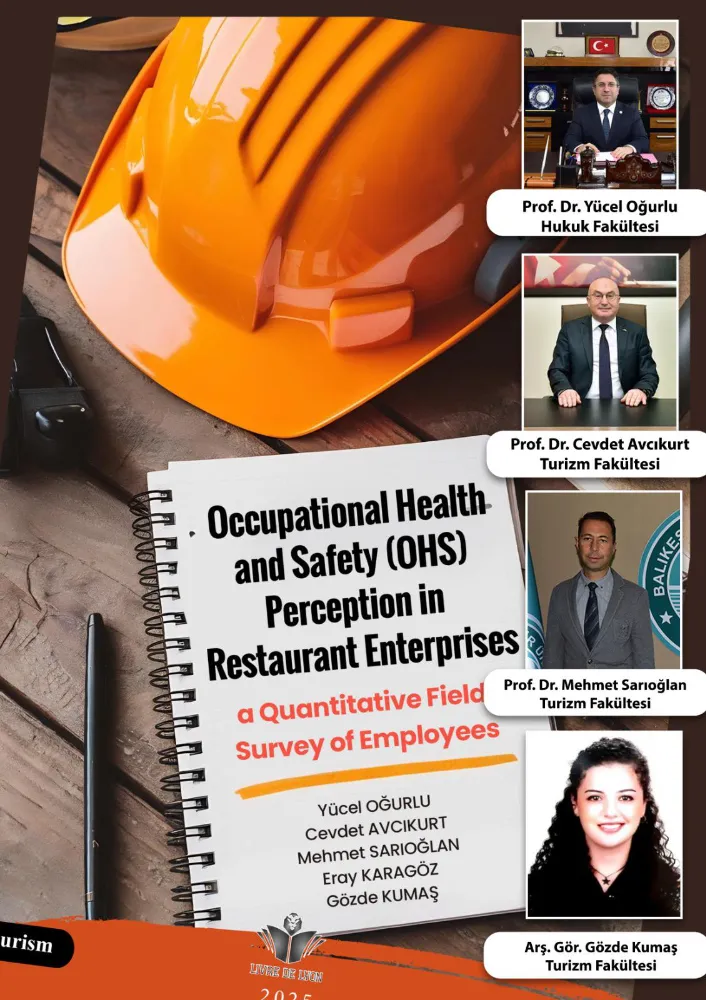 Balıkesir Üniversitesi (BAÜN) akademisyenlerinin yer aldığı yeni bir uluslararası kitap çalışması daha bilim dünyasıyla ve okuyucusuyla buluştu. Uluslararası nitelikli Livre de Lyon yayın evinden çıkan “Occupational Health and Safety (OHS) Perception in Restaurant Enterprises: A Quantitative Field Survey of Employees” başlıklı eser, restoran işletmelerinde çalışanların iş sağlığı ve güvenliği algısını nicel saha araştırmalarıyla ele alarak literatüre önemli bir katkı sundu.